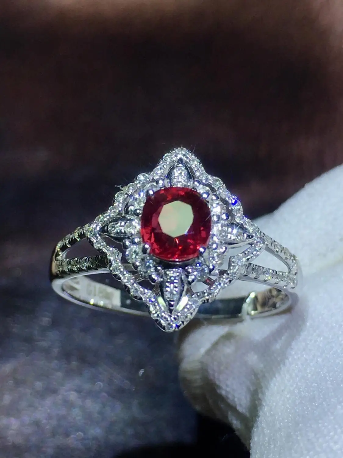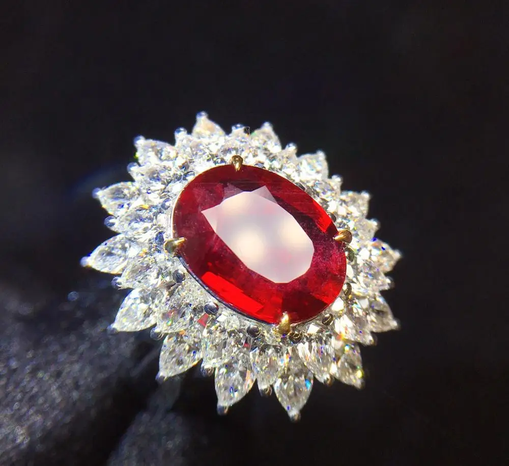 Kadin Guzel Taki Oval Dogal Yakut Gercek 18 K Beyaz Altin Elmas Yuzuk Toptan Kadinlar Icin Ozel Tasarim Dogum Gunu Hediyesi W245