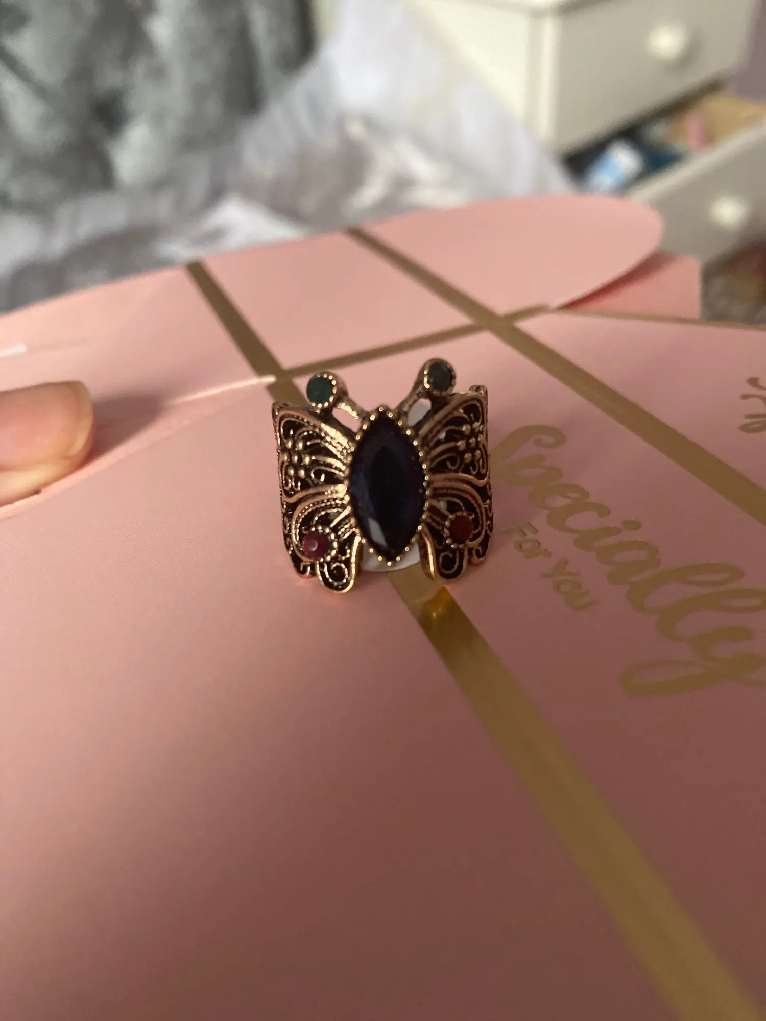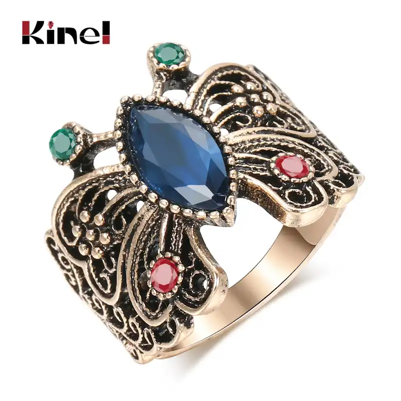 Kinel Hot Butterfly Ring For Women Antique Gold Blue Resin Crystal Gift Vintage Wedding Jewelry Rings Aliexpress