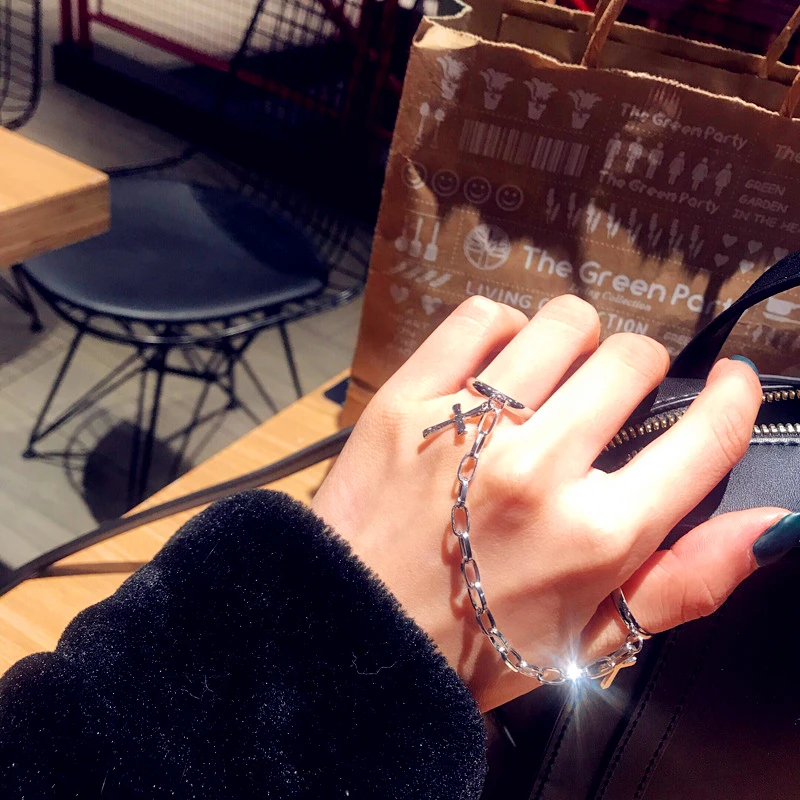 Gumus Renk Kaplama Retro Punk Hip Hop Ic Ice Yuzuk El Parmak Zinciri Ayarlanabilir Yuzuk Taki Hediye Erkekler Kadin Zincir Dugun Band Halkalar Aliexpress