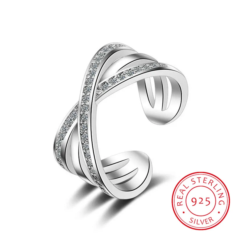 Kadinlar Icin 925 Ayar Gumus Yuzuk Moda Cok Katmanli Capraz Mozaik Cz Zirkonya Boyutlandirilabilir Yuzukler Bague Femme S R216 Halkalar Aliexpress