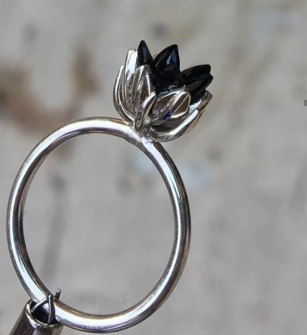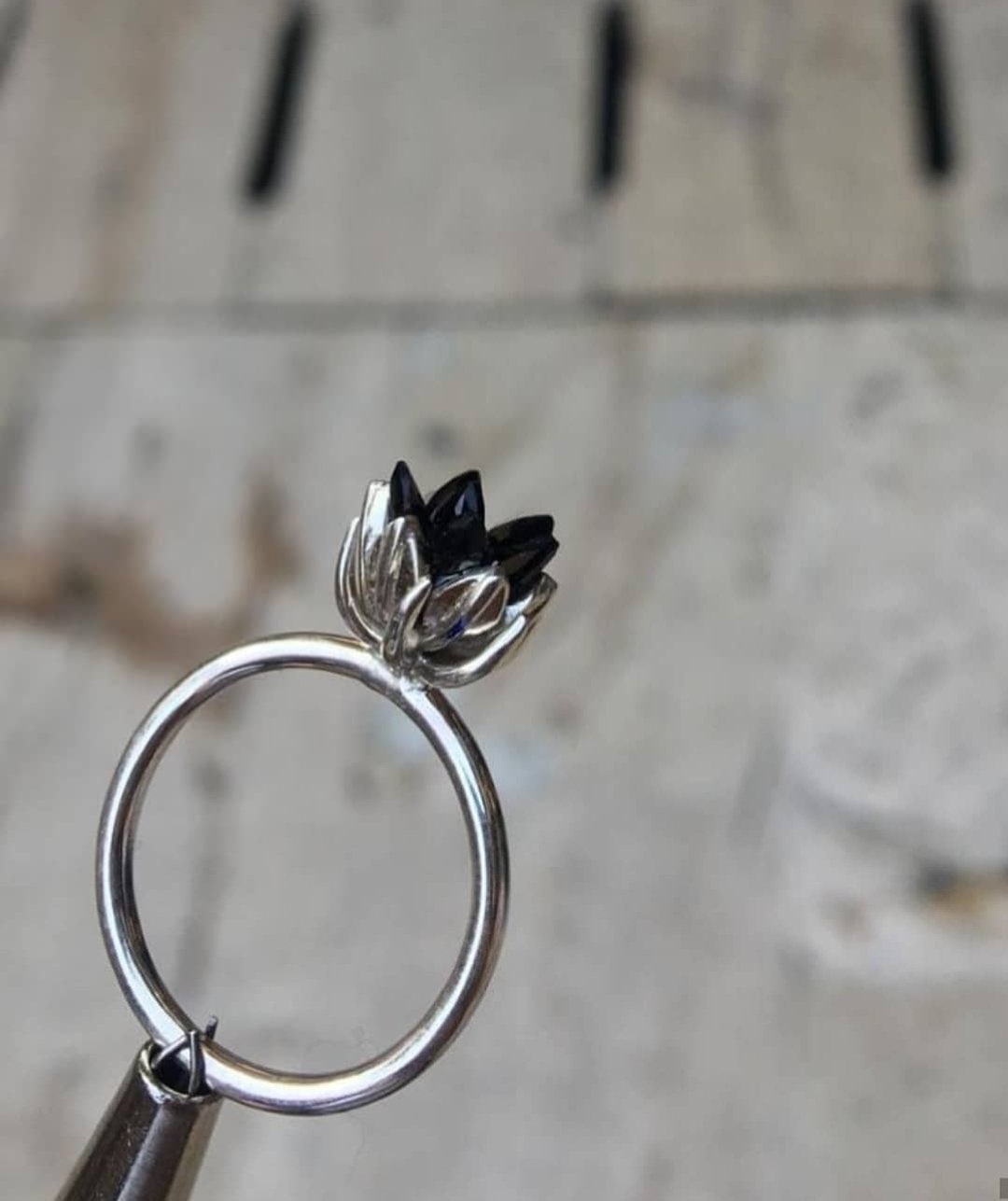 Unique Black Lotus Flower Ring Black Lotus Ring Unique Lotus Ring Lotus Flower Silver Ring Amethyst Stone Black Rings Rings