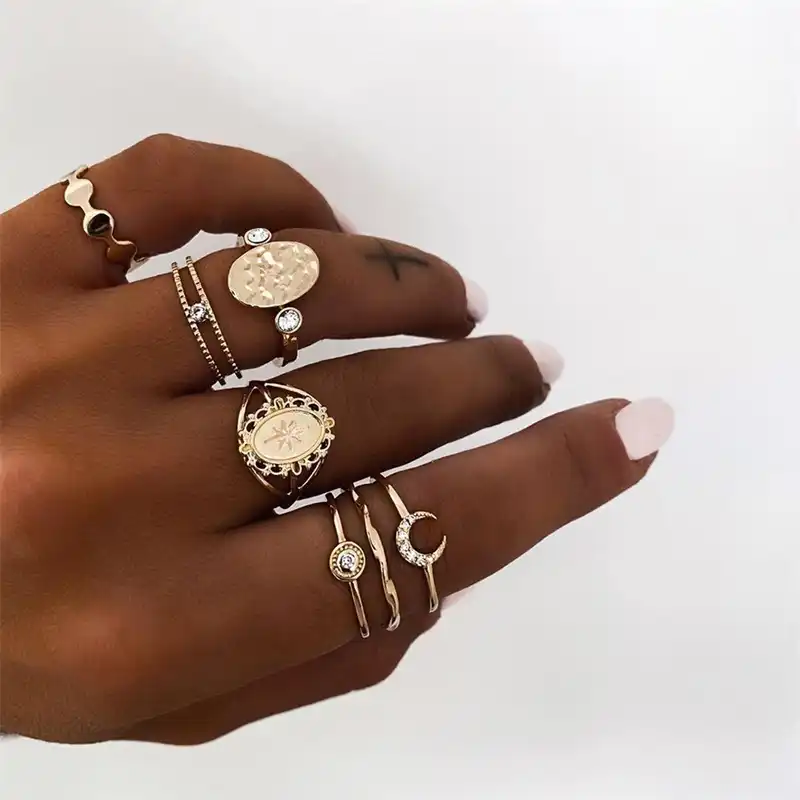 Ahmet Altin Gumus 11pcs Kadin Bohem Populer Kadin Yuzuk Seti Vintage Rhinestone Yaprak Hollow Ay Gunes Alasim Yuzuk Seti Satilik Taki Aksesuar Salemarketplace News