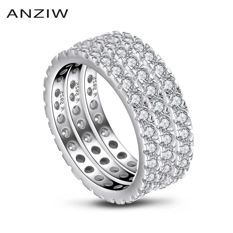 925 Ayar Gumus Tam Eternity Band Yuzukler Kadinlar Nisan Simule Elmas Dugun Gumus 3 Parca Yuzuk Taki Halkalar Aliexpress