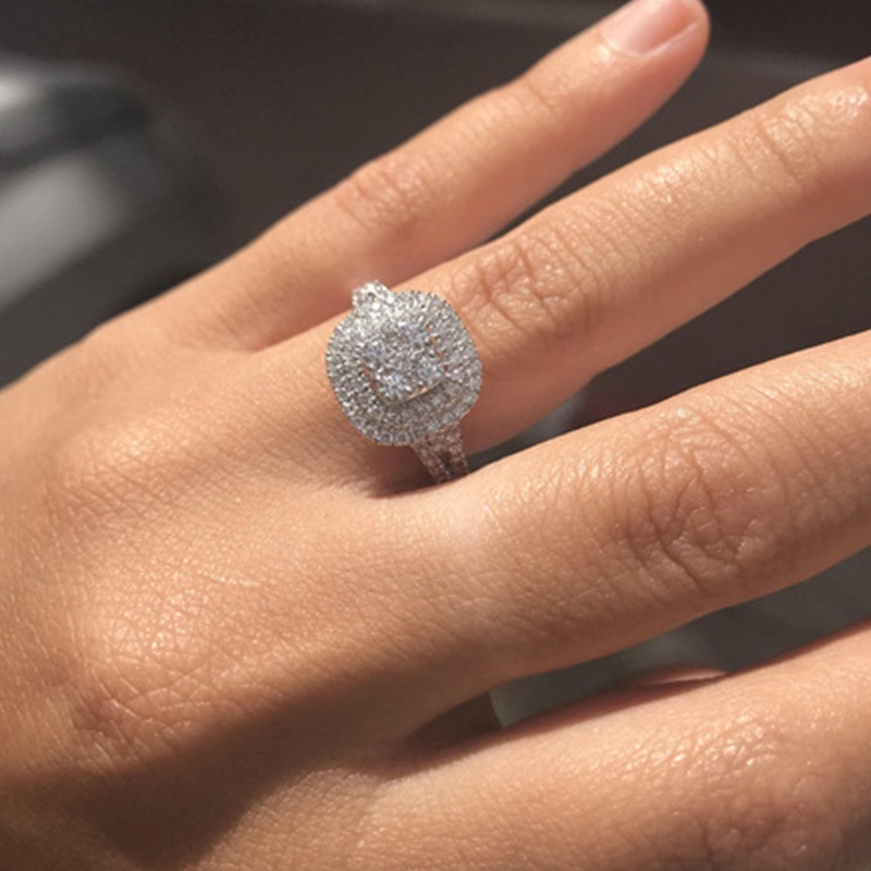 Hot Sale Silver Square Micro Set Round Diamond Ring Fashion Men And Women Engagement Ring Jewelry Shopee Indonesia