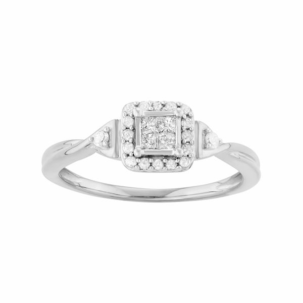 Sterling Silver 1 4 Carat T W Diamond Square Cluster Engagement Ring