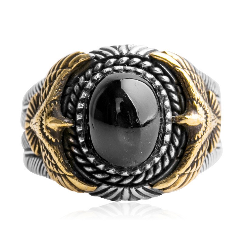 Satin Al 925 Ayar Gumus Kartal Yuzuk Retro 14 K Altin Dekorasyon Erkekler Yuzuk Oturmaci Siyah Kraliyet Mahkemesi Stil Agirlik 12g Genisligi 2 7 Cm Tl240 73 Tr Dhgate Com