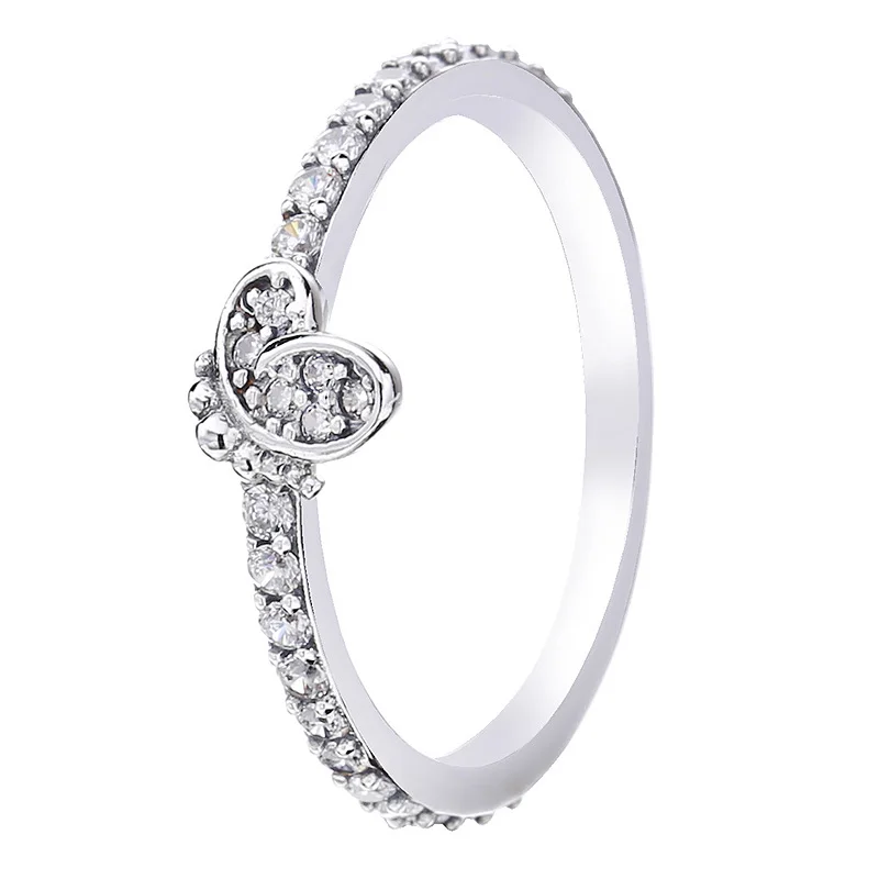 Gumus Renkli Kelebek Desenli Tasli Yuzuk