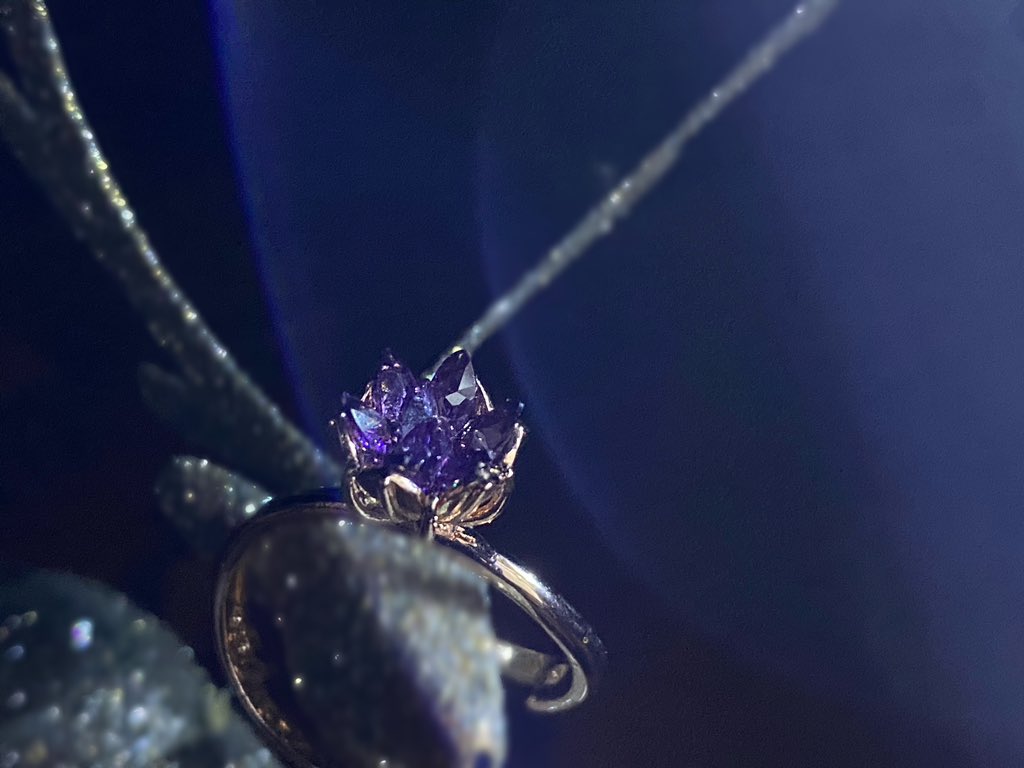 Ametist Tasli Mor Lotus Cicegi Yuzuk