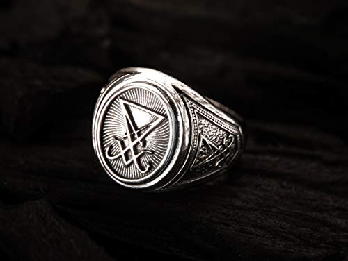 Amazon Com Sigil Of Lucifer Ring Devil Seal Of Satan Ring Seal Of Satan Baphomet Ring 925 Sterling Silver Handmade