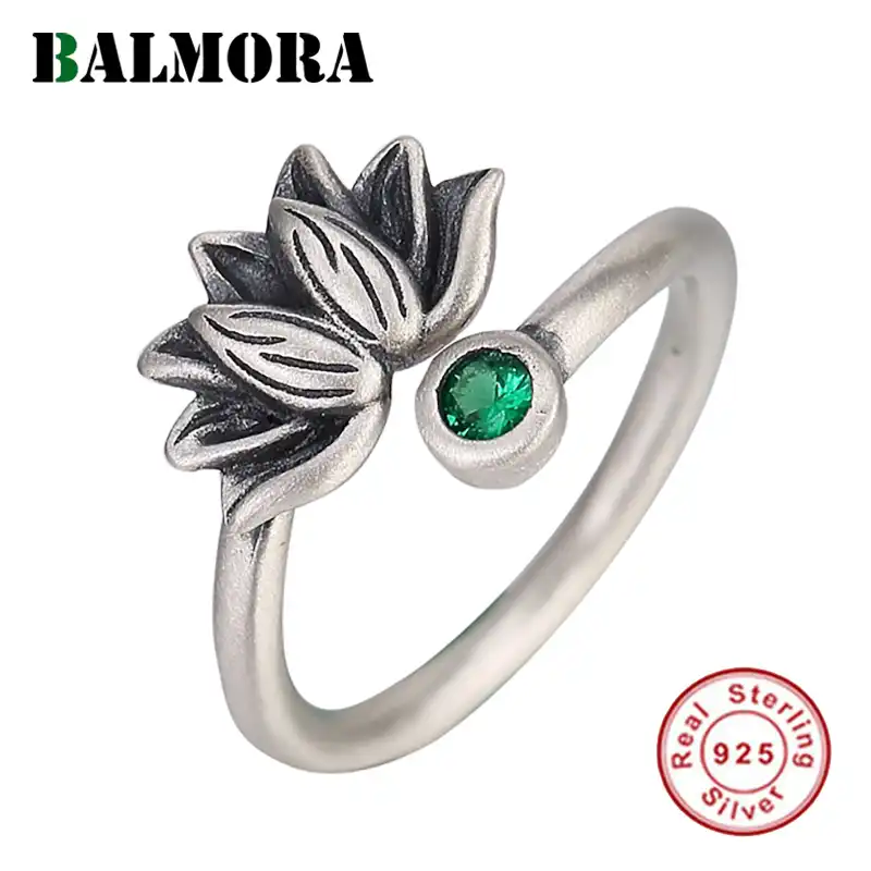 Balmora 925 Ayar Gumus Lotus Cicegi Acik Yuzukler Kadin Erkek Hediye Icin Yesil Zirkon Vintage Yuzugu Gumus Mucevherat Anillos Open Ring Rings For Womenring For Aliexpress