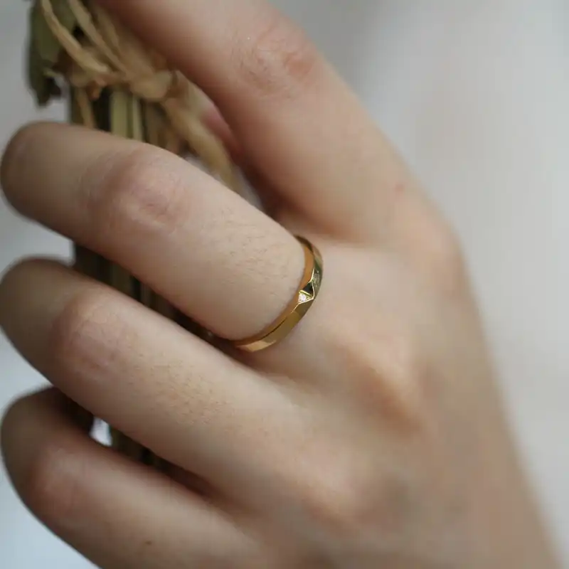 9k Kati Altin Yuzuk Ince Halka Bant Istifleme Yuzuk Zarif Minimalist Tektas Yuzuk Halkalar Aliexpress