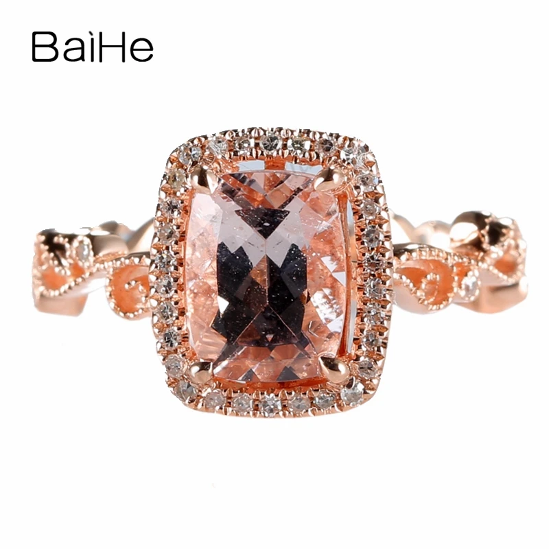 Baihe 1 28ct 6x8mm Yastik Dogal Morganit Yuzuk Si H Diamonds Kati 10k Rose Gold Millgrain Dugun Hediyesi Guzel Taki Moda Fine Jewelry Morganite Rose Goldnatural Diamond Aliexpress