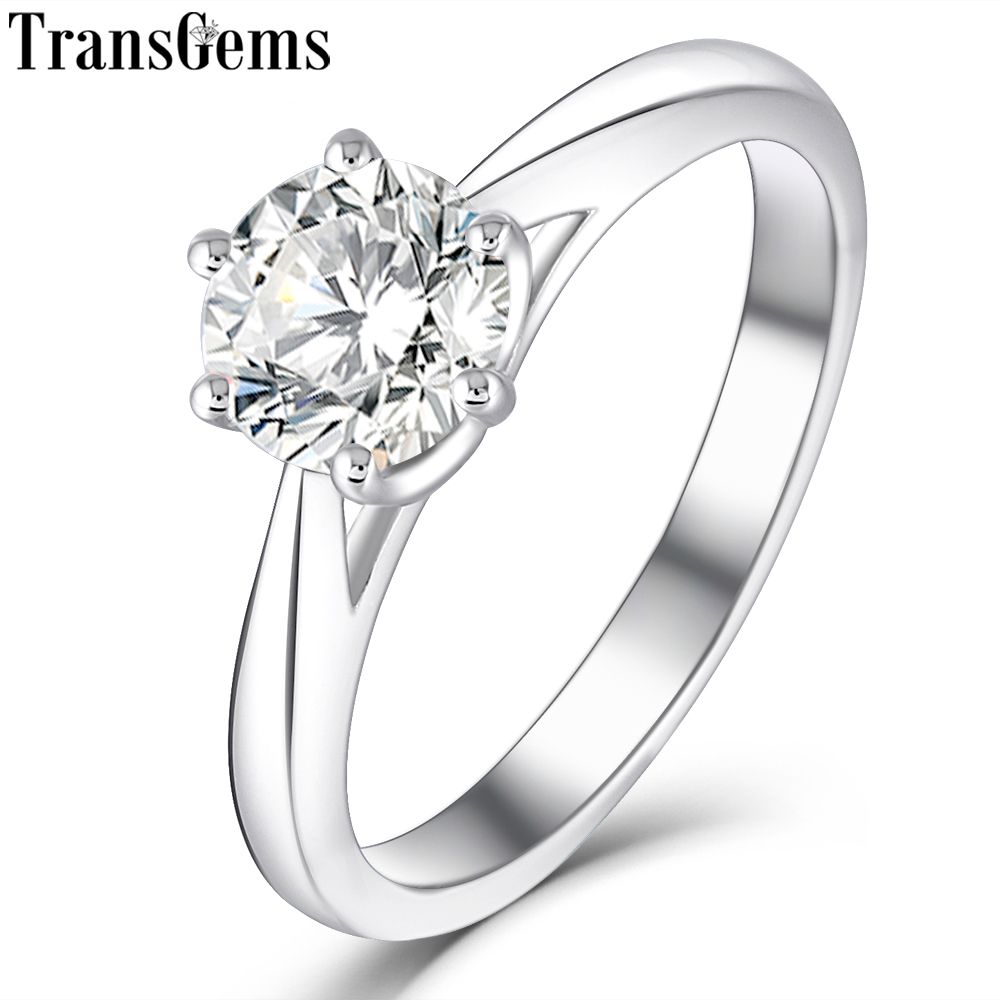 Transgems 1 Ct Karat Lab Grown Mozanit Pirlanta Tektas Alyans Kati 14 K Beyaz Altin Kadinlar Icin Nisan Band Engagement Ring White Gold Engagement Gold Ringengagement Ring Gold Aliexpress