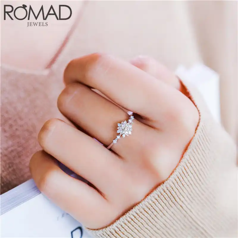 Romad Sevimli Kadin Kar Tanesi Yuzukler Kadin Chic Zarif Yuzuk Parti Narin Yuzuk Dugun Takisi 3 Renk Boyutu 5 11 R4 Halkalar Aliexpress