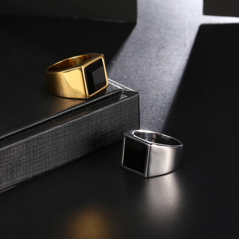 Paslanmaz Celik Kare Siyah Tas Yuzuk Erkekler Biker Rock Parmak Obsidyen Dogal Tas Yuzukler Erkek Hip Hop Punk Oniks Yuzuk Taki Halkalar Aliexpress