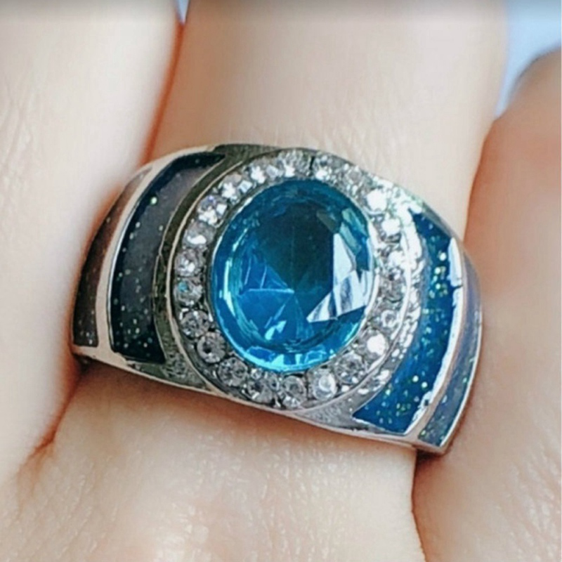 Blue Topaz Tasli Gumus Erkek Yuzuk Tesbihevim