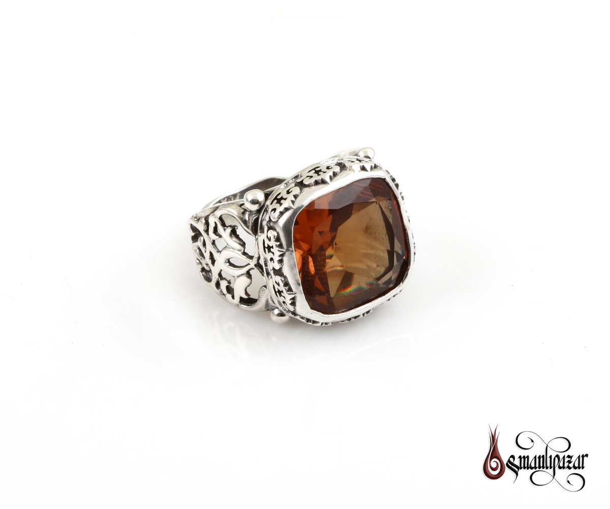 Vav Figurlu Zultanit Tasli Gumus Erkek Yuzuk Siset Gumus