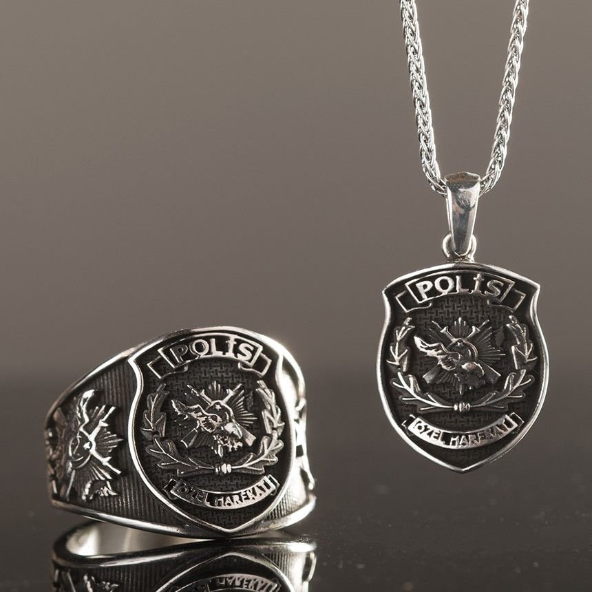Poh Polis Ozel Harekat 925 Ayar Gumus Erkek Yuzuk Ve Bileklik Kombini