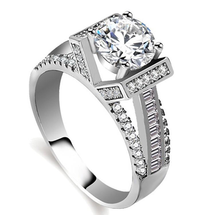 Hot Sale Silver Square Micro Set Round Diamond Ring Fashion Men And Women Engagement Ring Jewelry Shopee Indonesia