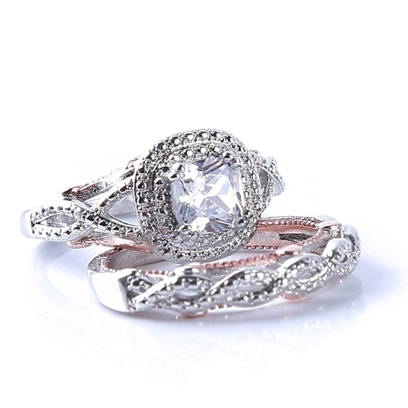 Fashion Color Separated Square Diamond Ring Princess Engagement Party Wedding Ring Bridal Diamond Ring Set Shopee Indonesia