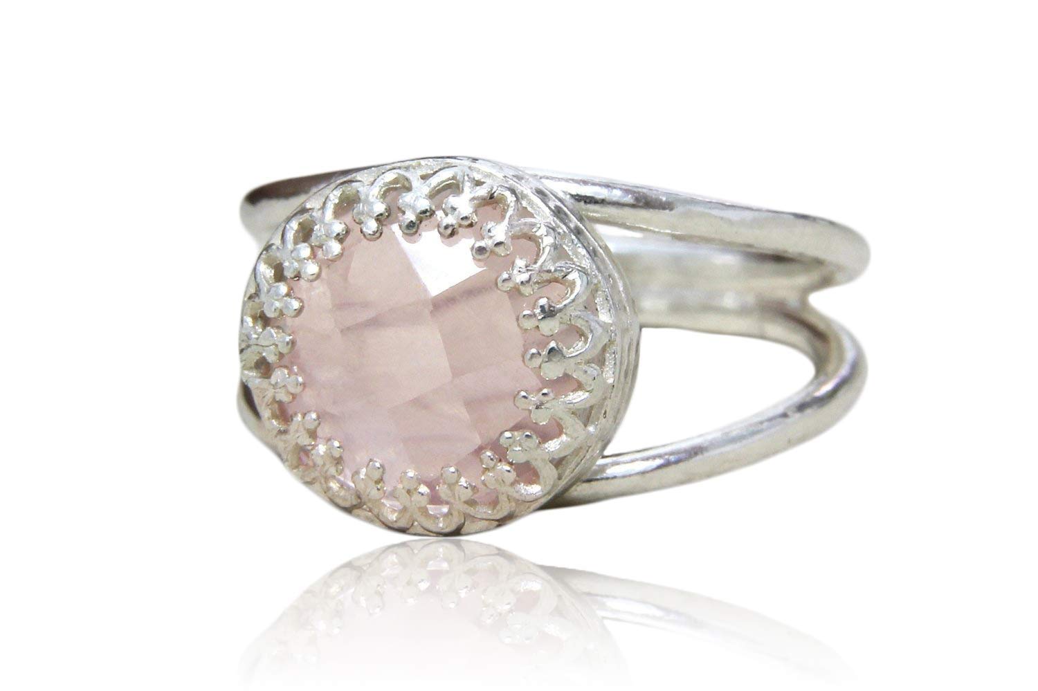 Amazon Com Anemone Jewelry 10mm 3 87ct Pink Rose Quartz Ring Solid Sterling Silver Quartz Ring Jewelry Made By Skilled Artisans Sizes 3 To 12 5 For Women Handmade Handmade