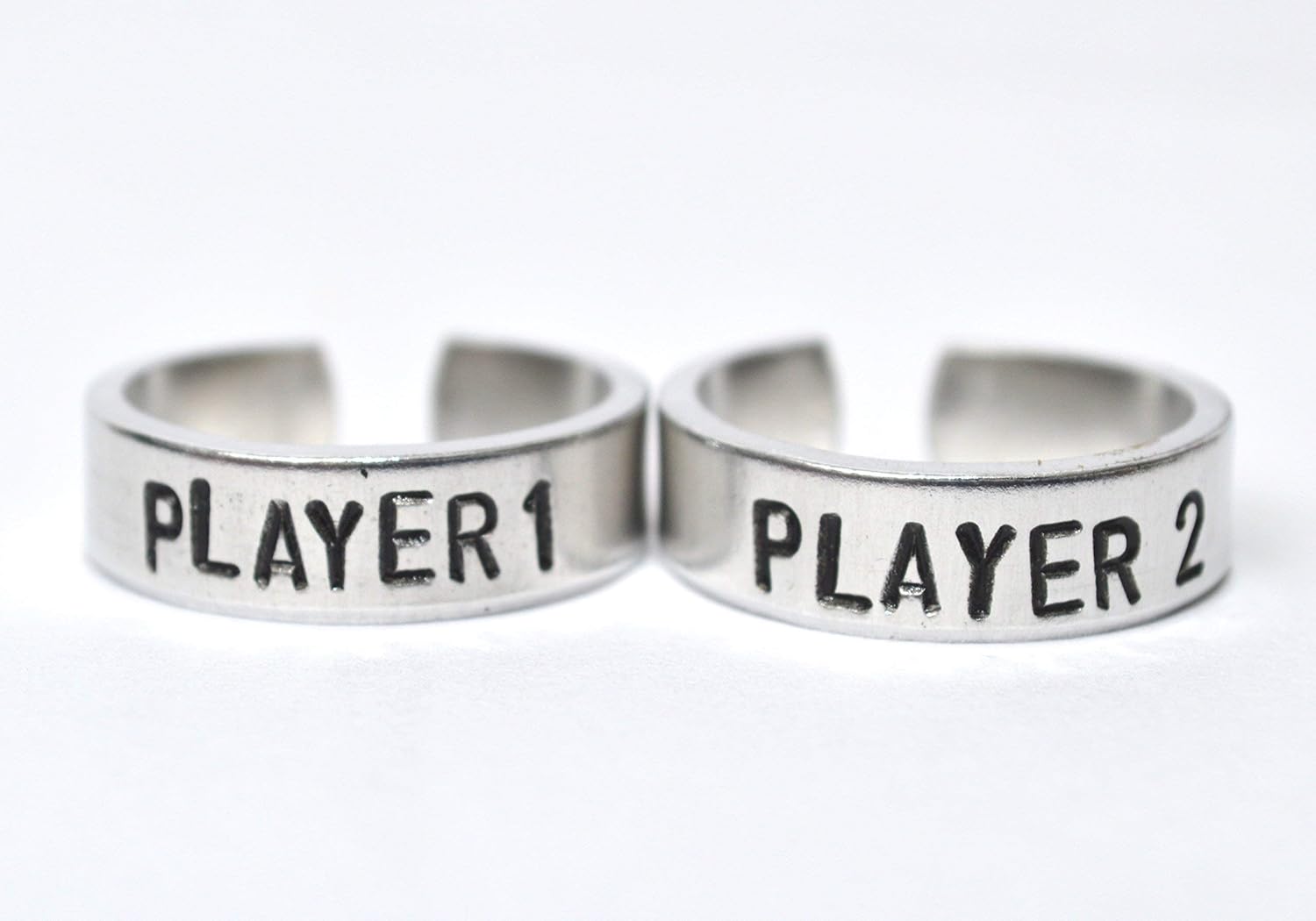 Player 1 Player 2 Stamped Rings Set Gamer Ring Video Game Ring Aluminum Ring Best Friend Gamer Gift Sold By Byvellamo On Storenvy