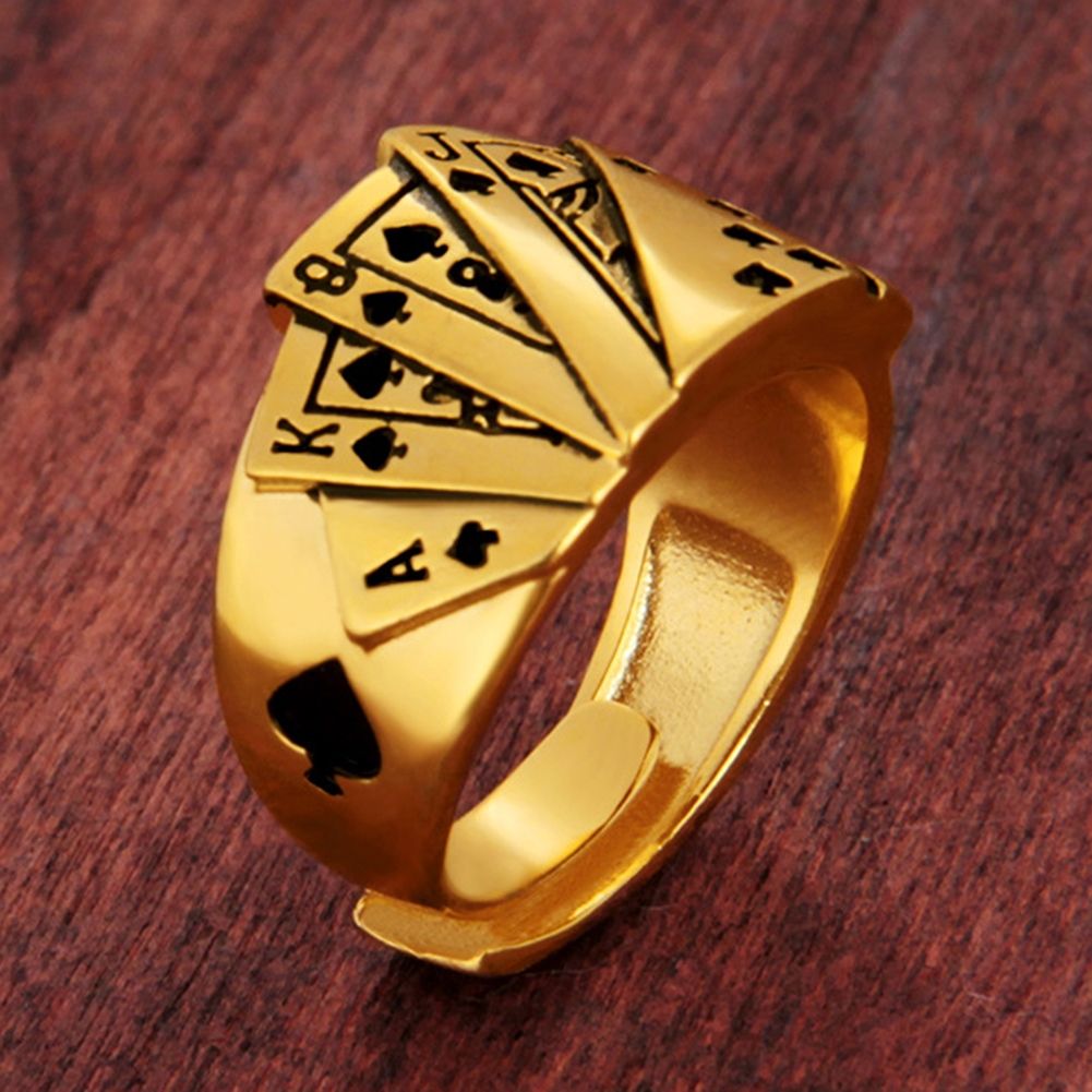 Satin Al Halka Ayarlanabilir Boyutu Dokum Buyucu Oynama Kart Erkek Titanyum Celik Yuzuk Retro Hip Hop Texas Poker Tonghuashun Tl16 61 Dhgate Comda