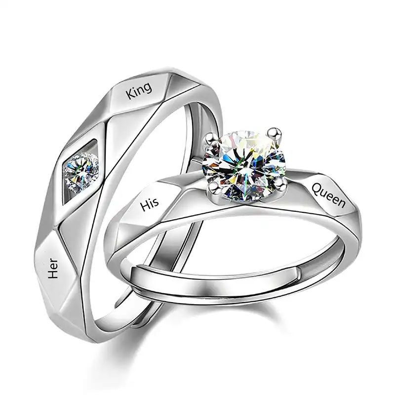 2 Adet Gumus Renk Onun Kralice Onun Kral Moda Cift Sevgilisi Soz Yuzugu Kadin Erkek Unisex Gumus Cz Dugun Takisi Nisan Yuzukleri Aliexpress