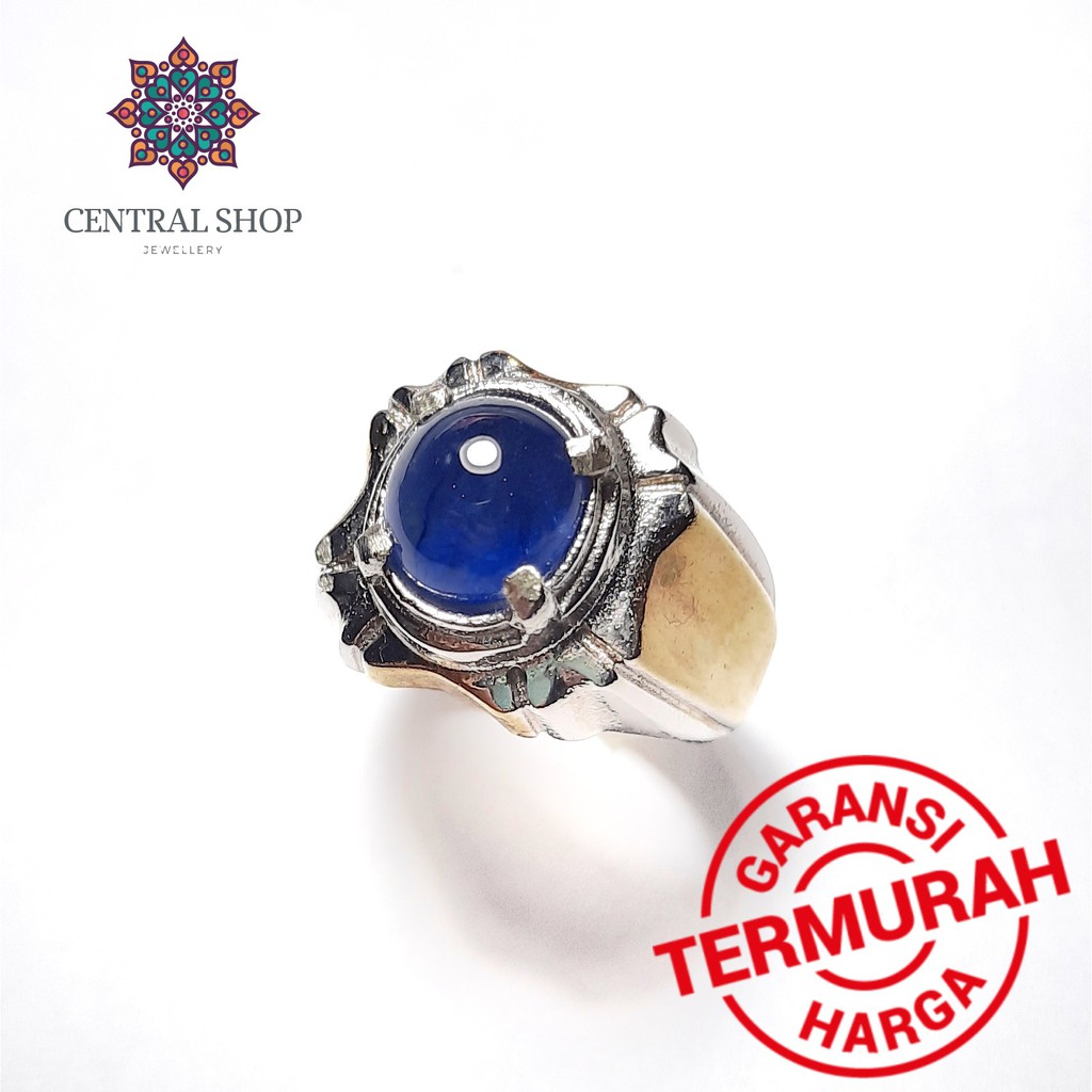 Cincin Pria Batu Permata Blue Safir Asli Natural Ring Silver Keren Mewah Shopee Indonesia