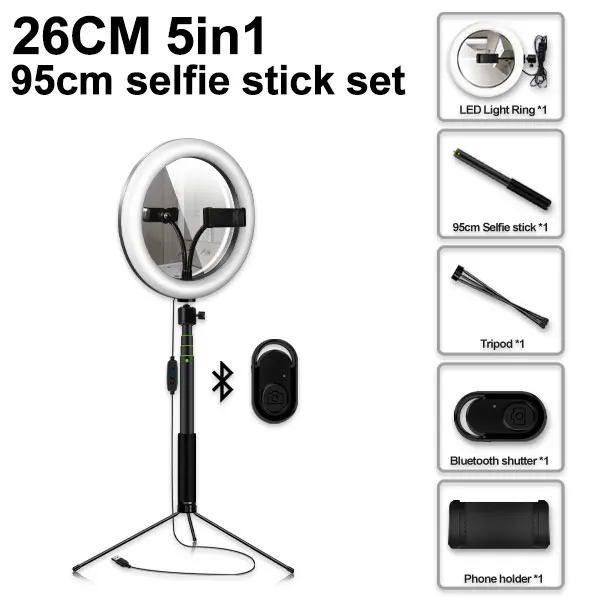 26cm Mirror Makeup Ring Light With Selfie Stick For Tiktok Recording Portable 10inch Lighting With Cell Phone Holder Desktop Led Lamp Photographic Lighting Aliexpress