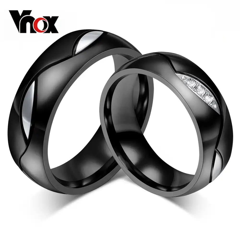 Vnox Siyah Alyans Lover Icin Cz Cift Yuzuk 316l Paslanmaz Celik Nisan Taki Wedding Rings Ring Forblack Wedding Rings Aliexpress