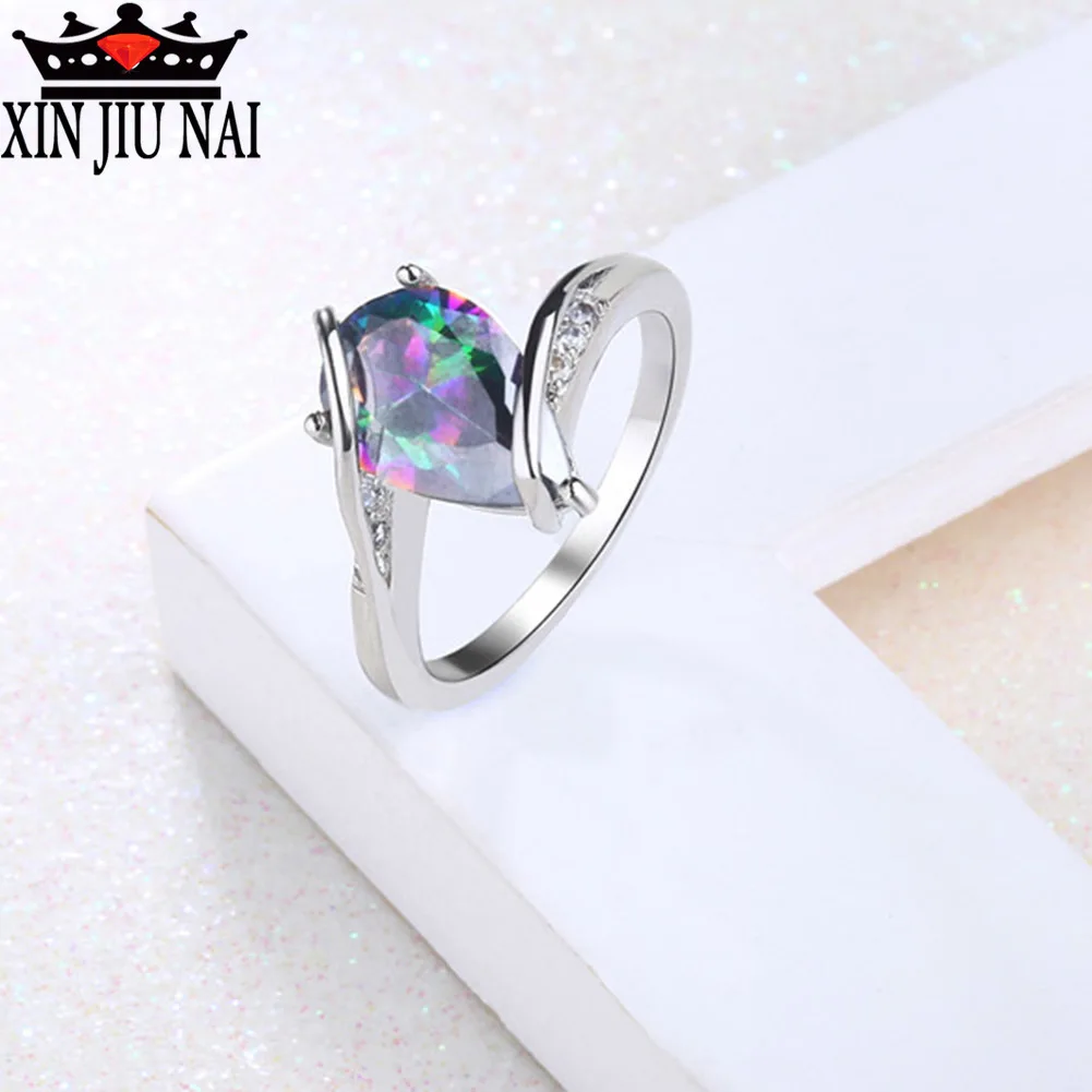 Cz Rhod Gokkusagi Renk Sihirli Su Damlasi Zirkon Halka Etrafinda Moda Parti Yuzukler Kadinlar Icin Renkli Su Damlaciklari Yuzuk Halkalar Aliexpress