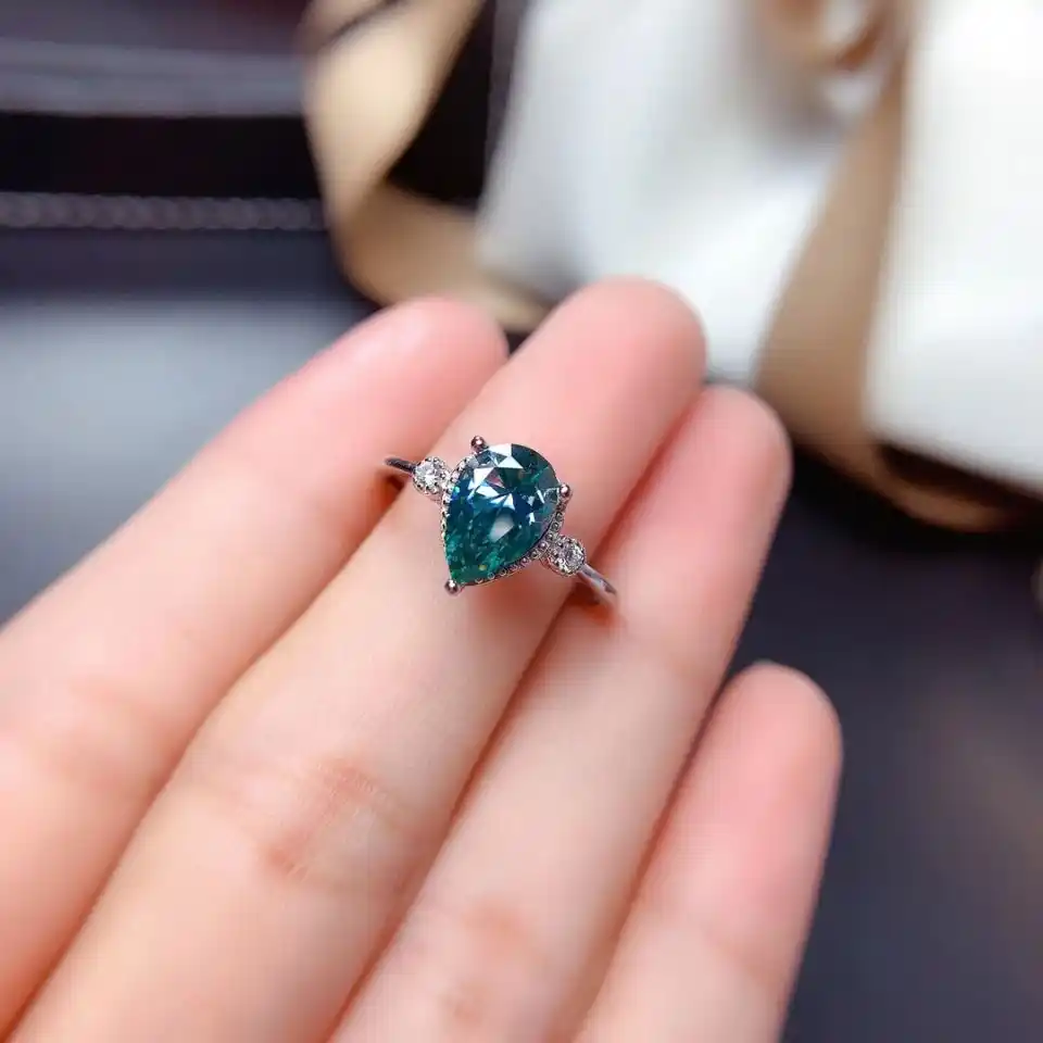 Meibapj 1 5 Karat Yesil Mozanit Elmas Su Damlasi Yuzuk Kadinlar Icin 925 Ayar Gumus Guzel Dugun Takisi Halkalar Aliexpress