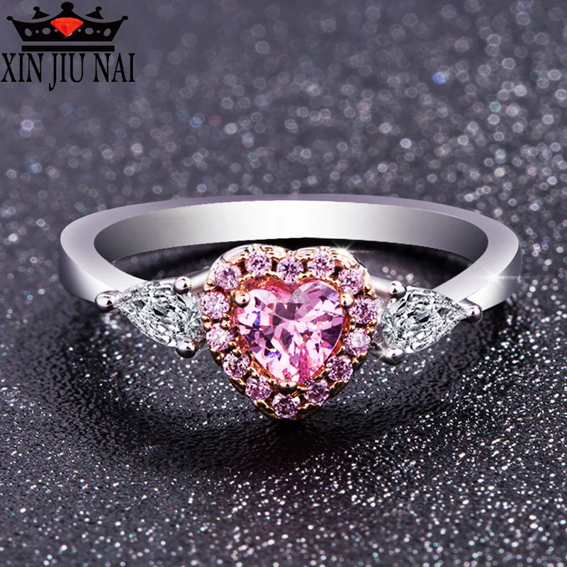 Basit Moda Pembe Kristal Seftali Kalp Seklinde Beyaz Su Damlasi Zirkon Yuzuk Sevgililer Gunu Hediye Bayan Taki Halkalar Aliexpress
