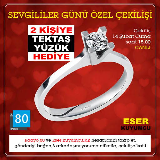 Radyo 80 Evdekal V Twitter 2 Tektas Yuzuk Cekilisi 14 Subat Sevgililer Gunu Hediyeniz Eser Kuyumculuk Tan Cekilisle 2 Kisiye Tektas Yuzuk Hediye Edilecektir Katilim Sartlari Radyo 80 In Instagram Hesabindan Yapilan Ilgili