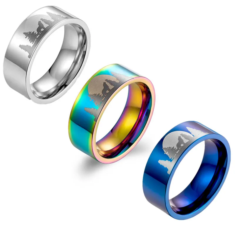 Renkli Yalniz Kurt Ay Isiginda Orman Baski Kadin Erkek Moda Titanyum Yuzuk Celik Ilham Yuzuk Halkalar Aliexpress