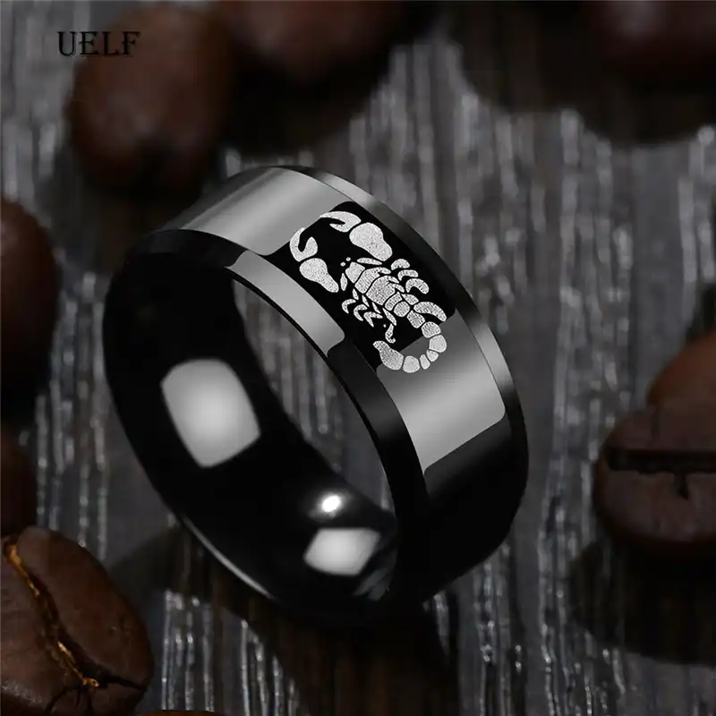 Uelf Punk Vintage Siyah Akrep Desen Erkek Yuzuk Paslanmaz Celik Titanyum Yuzuk Erkekler Kadinlar Icin Dugun Bantlari Halkalar Aliexpress