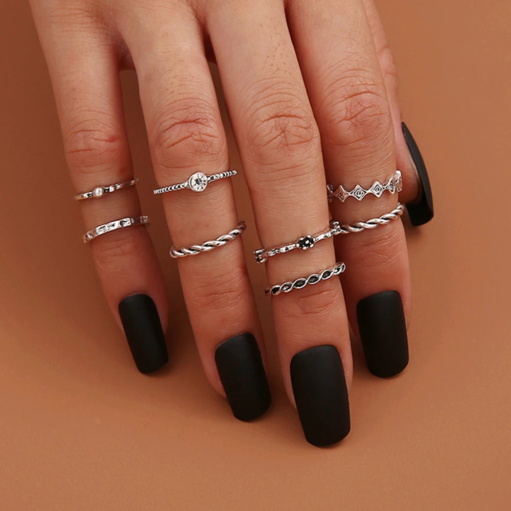 8 Adet Takim Vintage Gumus Renk Kristal Knuckle Yuzuk Seti Kadinlar Icin Geometrik Yuvarlak Bukum Parmak Yuzuk Kadin Moda Taki Yeni Halkalar Aliexpress