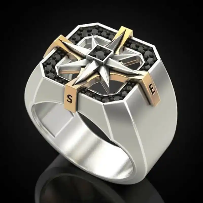 Benzersiz Tasarim Erkek Yaratici Vintage Yuzukler Paslanmaz Celik Aaa Zirkon Kakma Iki Ton Viking Pusula Yuzuk Erkekler Icin Dugun Bant Dugun Bantlari Aliexpress