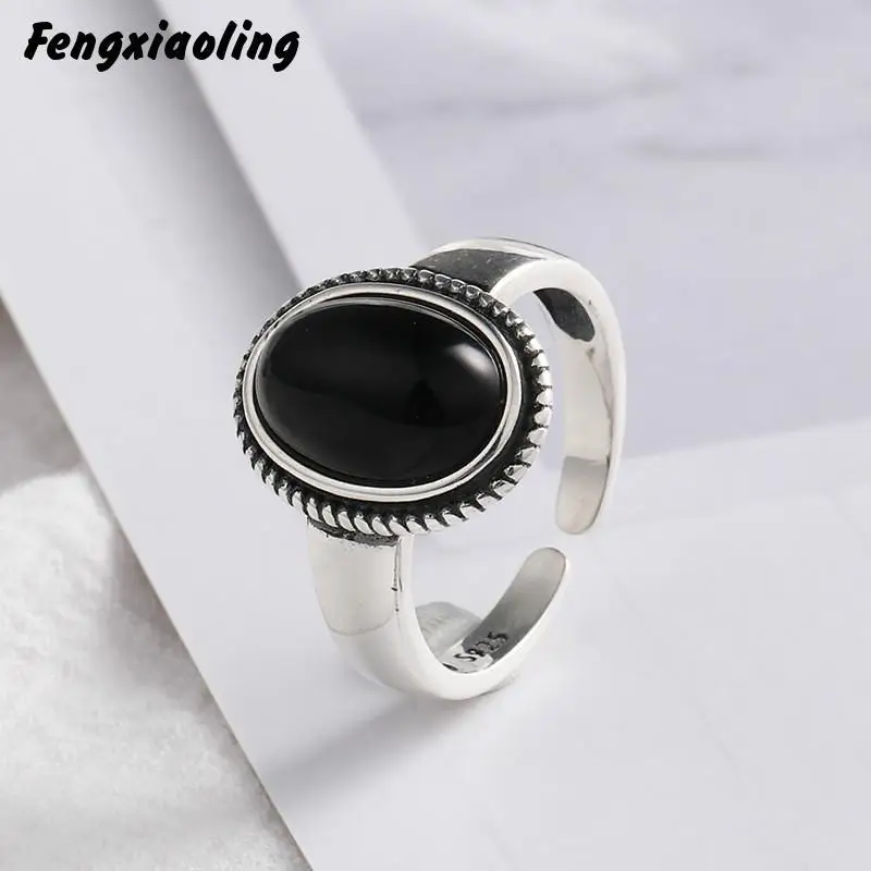 Yeni Gelenler 925 Ayar Gumus Siyah Akik Yuzuk Kadinlar Icin Avrupa Tarzi Narin Oval Tas Bayan Yuzuk Taki Halkalar Aliexpress