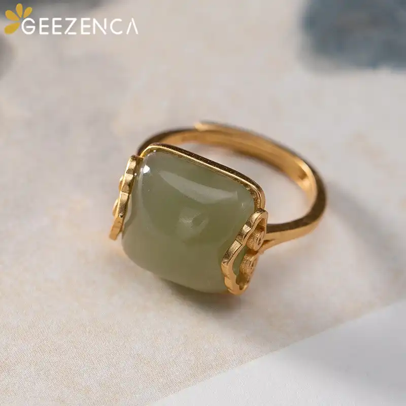 Vintage 925 Ayar Gumus Altin Kaplama Yesil Yesim Ugurlu Bulut Kadin Yuzuk Orijinal Tasarim Basit Tas Acik Yuzuk Hediye Halkalar Aliexpress