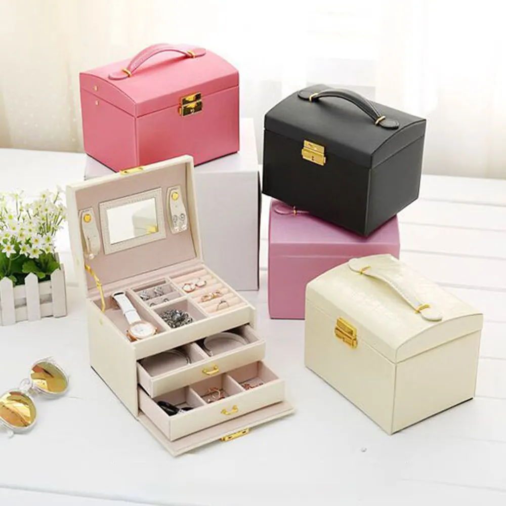 3 Katmanlar Taki Kutusu Cift Cizim Deri Buyuk Mucevher Kutusu Armoire Soyunma Gogus Klipsler Bilezik Yuzuk Organizator Da Aliexpress