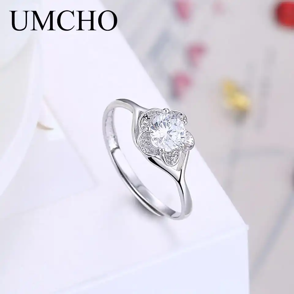 Umcho Zarif Cicek Yuzuk Gercek 925 Ayar Gumus Kubik Zirkon Yuzukler Kadinlar Icin Kadin Gunluk Dugun Yildonumu Guzel Taki Halkalar Aliexpress