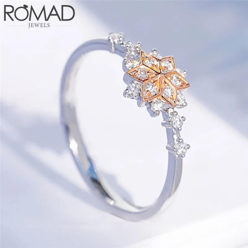 Romad Sevimli Kadin Kar Tanesi Yuzukler Kadin Chic Zarif Yuzuk Parti Narin Yuzuk Dugun Takisi 3 Renk Boyutu 5 11 R4 Halkalar Aliexpress