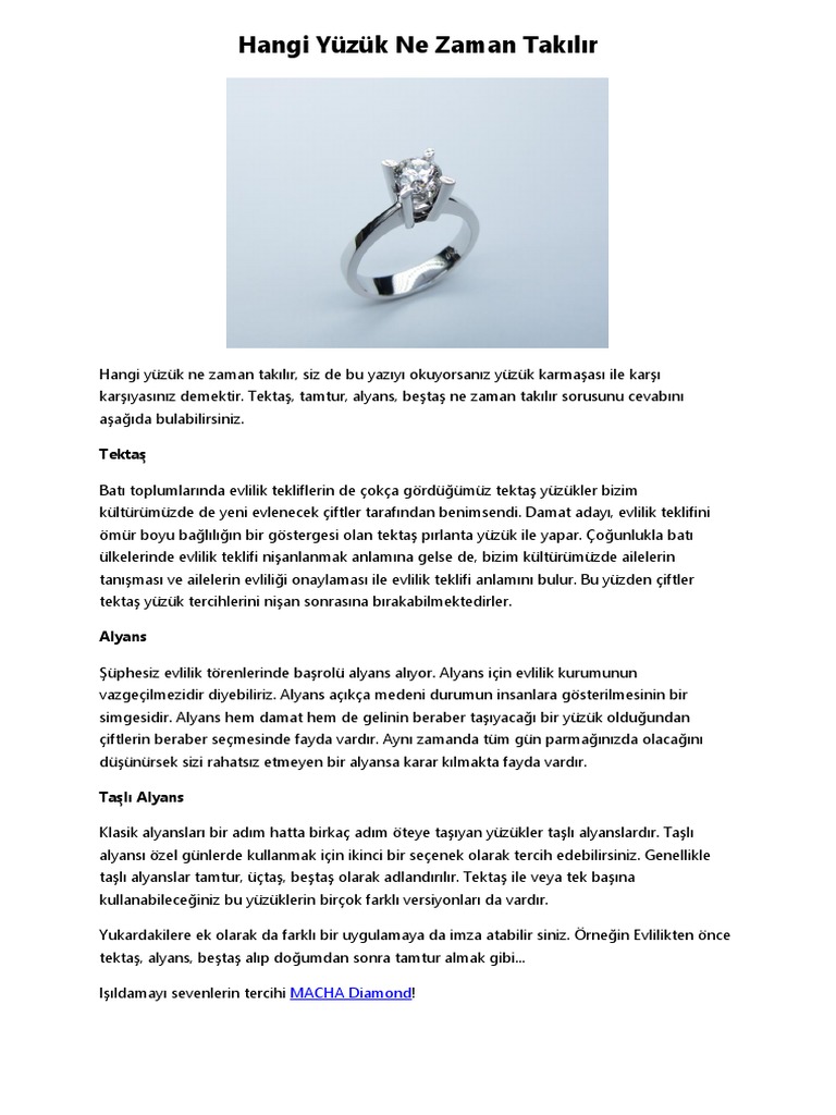 Hangi Yuzuk Ne Zaman Takilir Macha Diamond