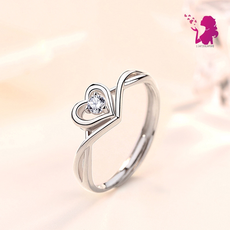 Heart Shaped Rhinestone Ring S925 Sterling Silver Adjustable Women Wedding Engagement Daily Ring Shopee Indonesia