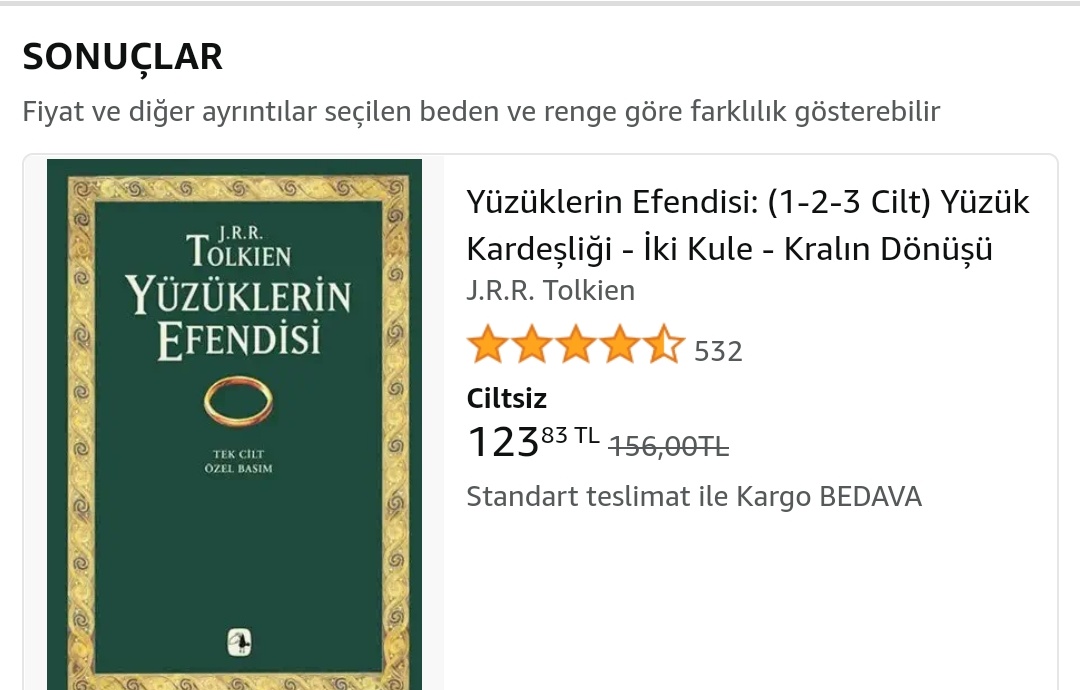 Yuzuklerin Efendisi Tek Cilt Ozel Basim 70 Lira Amazon Kitap Alisverisim 2 Youtube