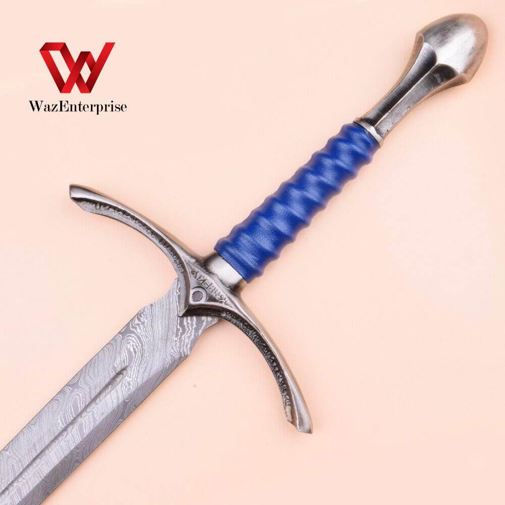 Amazon Com Waz Enterprise Lord Of Ring Narsil Damascus Sword Custom Handmade With Pure Blue Leather Sports Outdoors