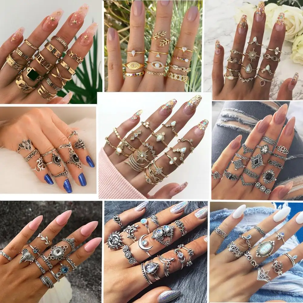 30 Stilleri Bohemian Yuzukler Kristal Yildiz Tac Capraz Yilan Damla Fil Geometri Altin Yuzuk Seti Kisilik Bayan Dugun Taki Halkalar Aliexpress