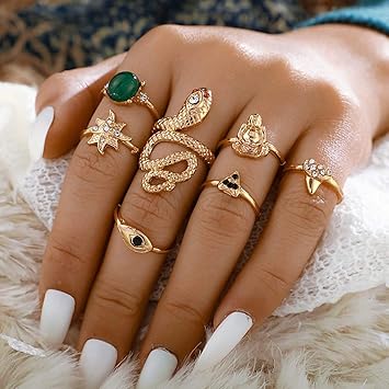 Amazon Com Sethain Vintage Gold Ring Set Snake Green Gem Eye Rhinestone Flower Retro Stackable Joint Knuckle Finger Rings Sets For Women And Girls 8 Pcs Beauty